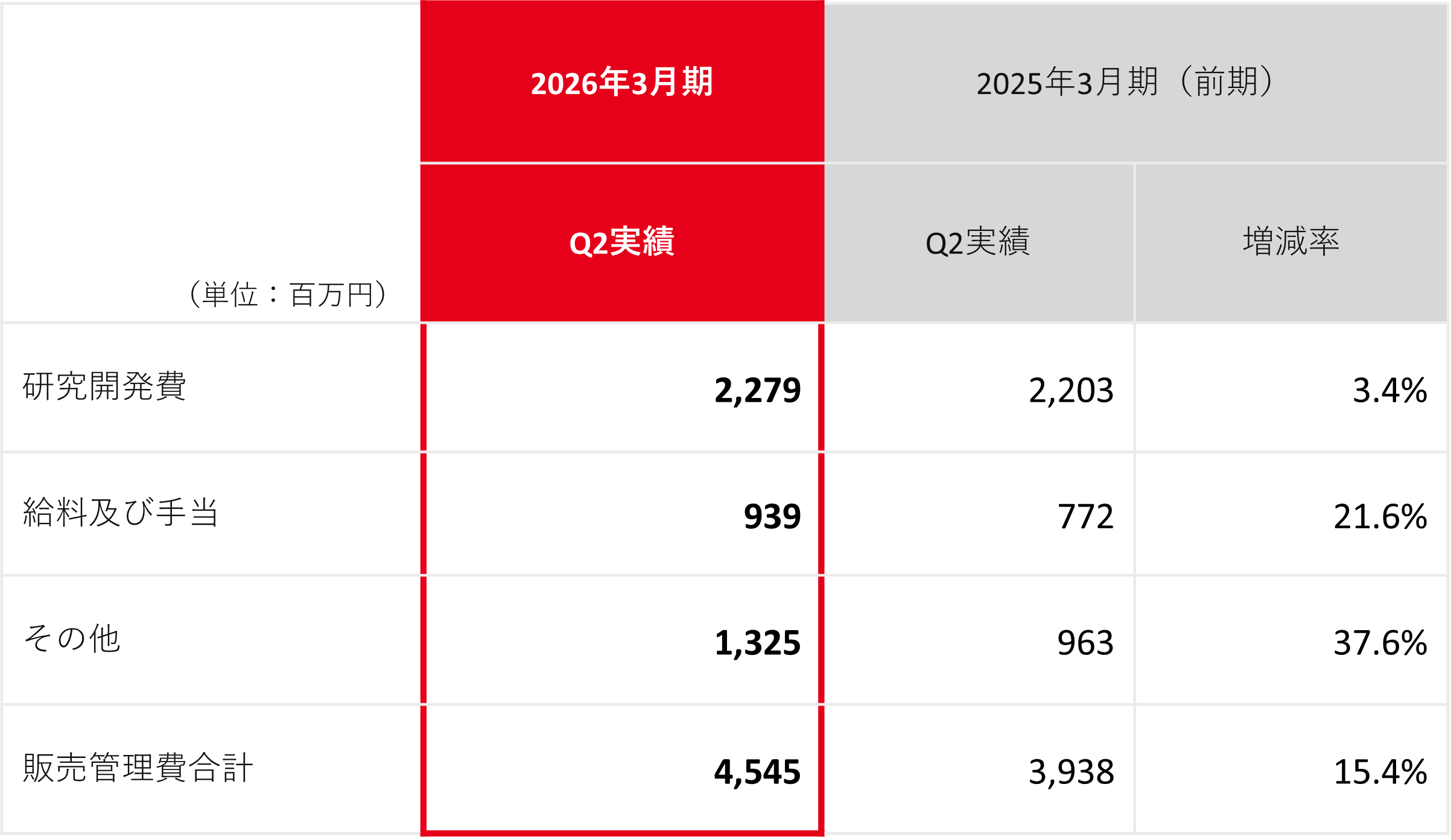 日本法人においては費用計上の対象となるミッションが、ミッション2からミッション4へ移行したことに加え、米国法人も研究開発を進めたことにより、前年同期比でほぼ横ばいとなりました。